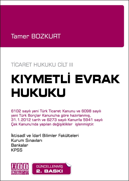 6102 sayılı yeni Türk Ticaret Kanunu'na göre hazırlanan kitabımızın baskısının tükenmesi nedeniyle, gerek İktisadî ve İdarî Bilimler Fakültesi öğrencileri, gerek Kurum sınavlarına hazırlanan kişiler için, kitabımız yeni baskıya hazırlanmıştır. Bu baskıda, bazı yazım hataları düzeltilmiş; kitaba bazı ufak eklemeler yapılmış ve kitap baştan gözden geçirilmiştir.